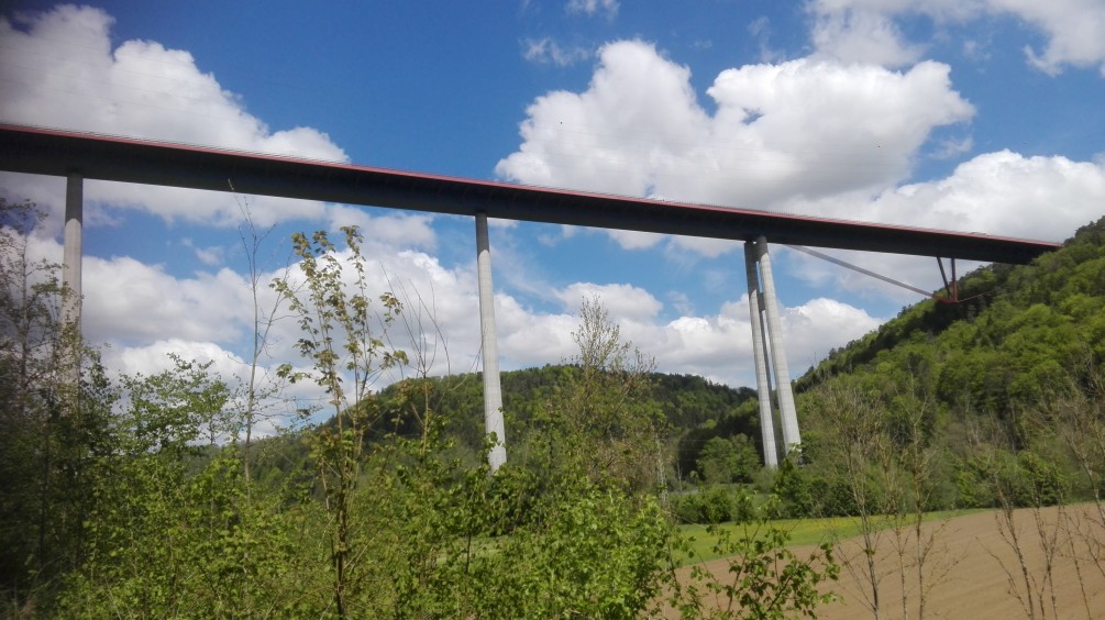 Der Wanderweg unter der Autobahnbrücke ist leider wegen Bauarbeiten gesperrt, so wandern wir durch den herrlich im Neckartal liegenden Golfplatz. Da heißt es aufpassen: „tieffliegende“ Golfbälle.