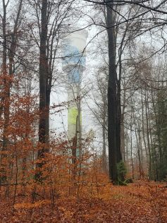 Von dort ging es jetzt bergauf, oberhalb des ehemaligen Sindelfinger Skihanges hatte man einen kurzen Blick auf den im Nebel sich zeigenden Wasserturm. Jetzt war es nicht mehr weit bis zur Mittagsrast.