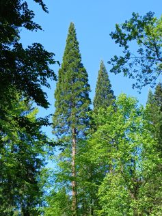 Ein kurzes Stück ging man Richtung Plieningen. Vorbei ein einigen Schildern mit Baumbeschreibungen, man war auf dem Waldlehrpfad von ForstBW.. Ein mächtiger Mammutbaum war ein besonderer Blickfang.
